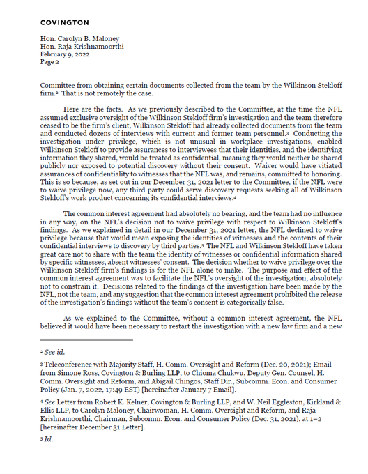 The Nfl Tells Congress Washington Is Denying Access To 109 000 Documents From Investigation Hogs Haven